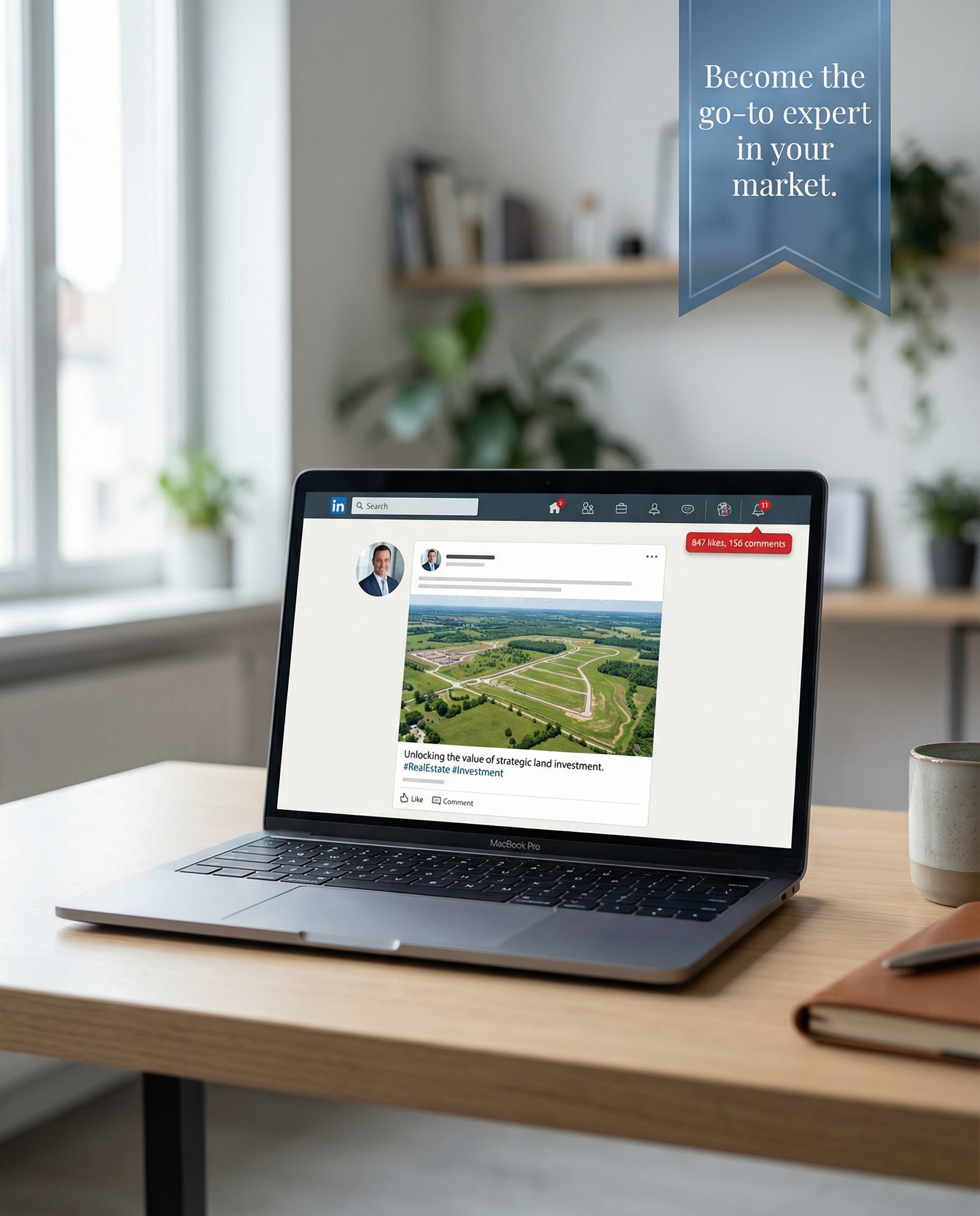 Everything is built around land-focused visuals, proven post formats, and messaging that reflects your industry, helps you provide value and position yourself as an authority in your market.
